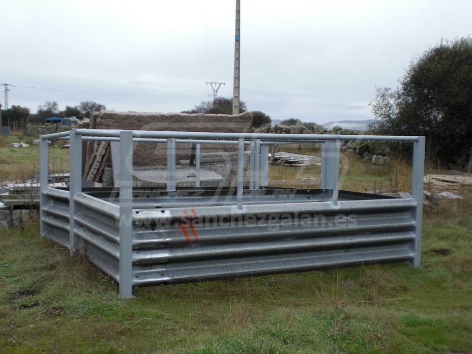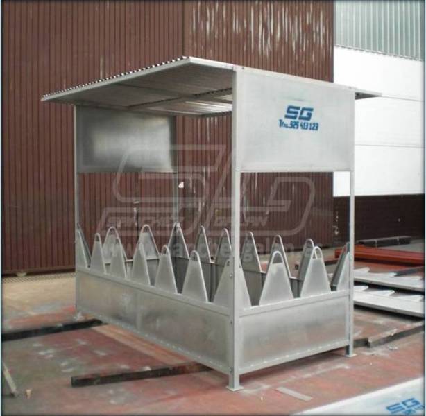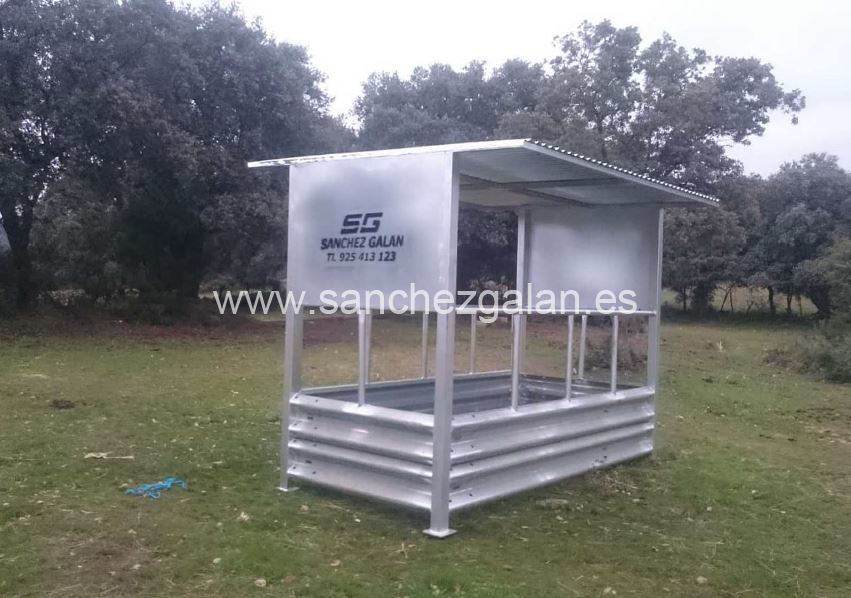Comedero para vacas con techo y a cuatro caras. Fabricado con chapa galvanizada, es totalmente desmontable.