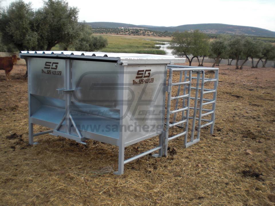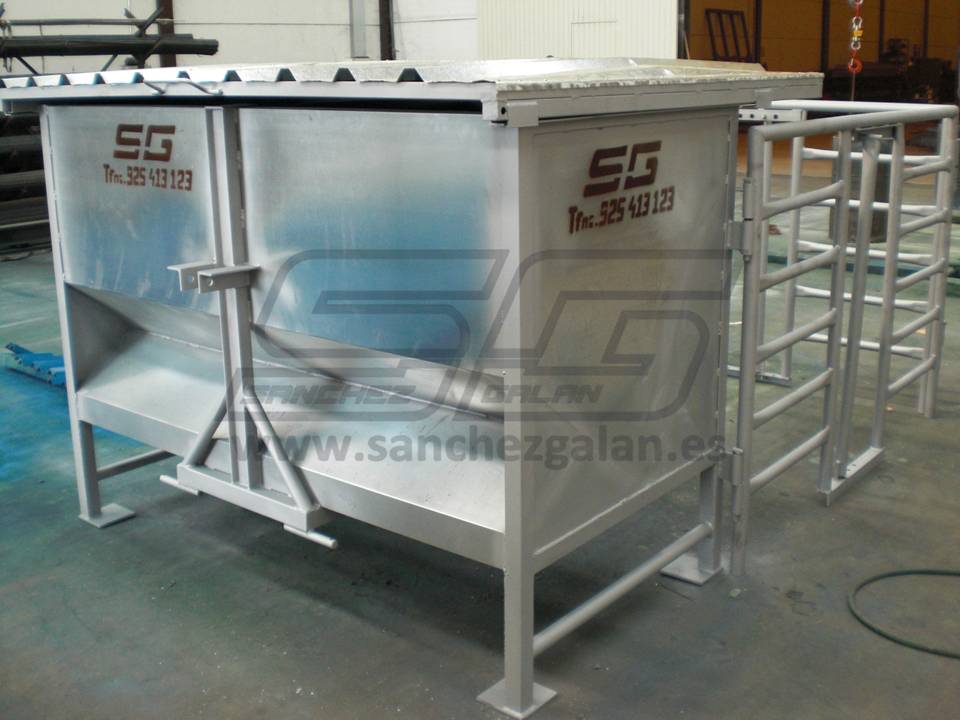 Comedero - Tolva especial de gran capacidad para vacas y ganado vacuno en general. Diseñada para la mezcla de pienso y paja. Fabricada en chapa galvanizada.