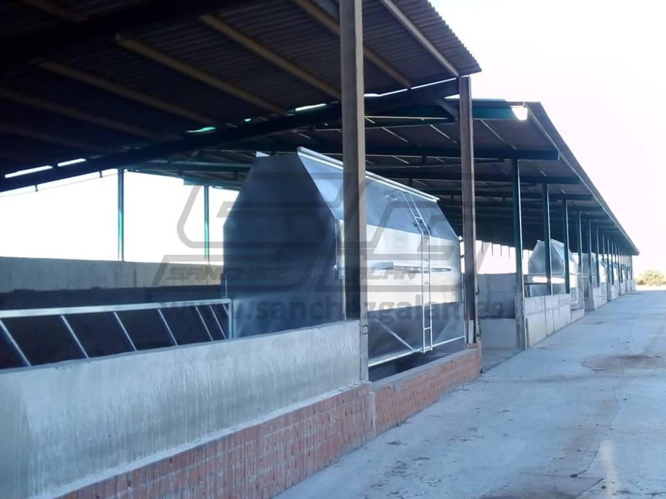 Tolva para pienso de cinco metros de largo con trampilla. Puede que le interese nuestro apartado de naves ganaderas.
